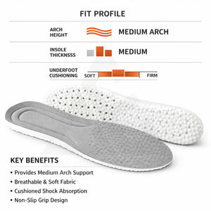 High-Density Memory Foam Core – Adapts to your foot shape, providing superior shock absorption and reducing fatigue.