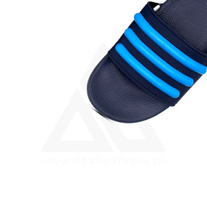 Step into comfort with these premium Adi-inspired slides featuring a sleek navy and bright blue stripe design. Built for everyday wear, these slides combine iconic three-stripe styling with modern comfort technology.