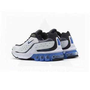 The Amax Elite - White Blue delivers a clean, classic look with a vibrant performance edge. This sleek runner showcases the iconic Amax cushioning system with eye-catching blue air pods that pop against the crisp white and grey upper, creating a fresh colorway that's perfect for any season.