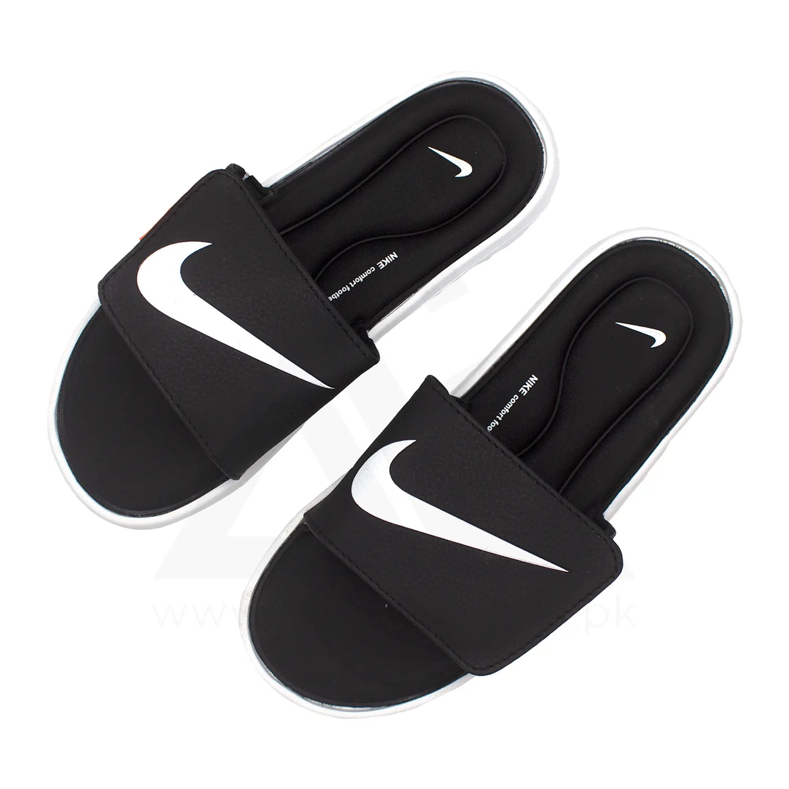 Experience premium comfort with these sleek NK-inspired slides featuring a classic black and white two-tone design. Built with advanced foam technology and an adjustable strap system, these slides deliver superior cushioning and timeless athletic style.
