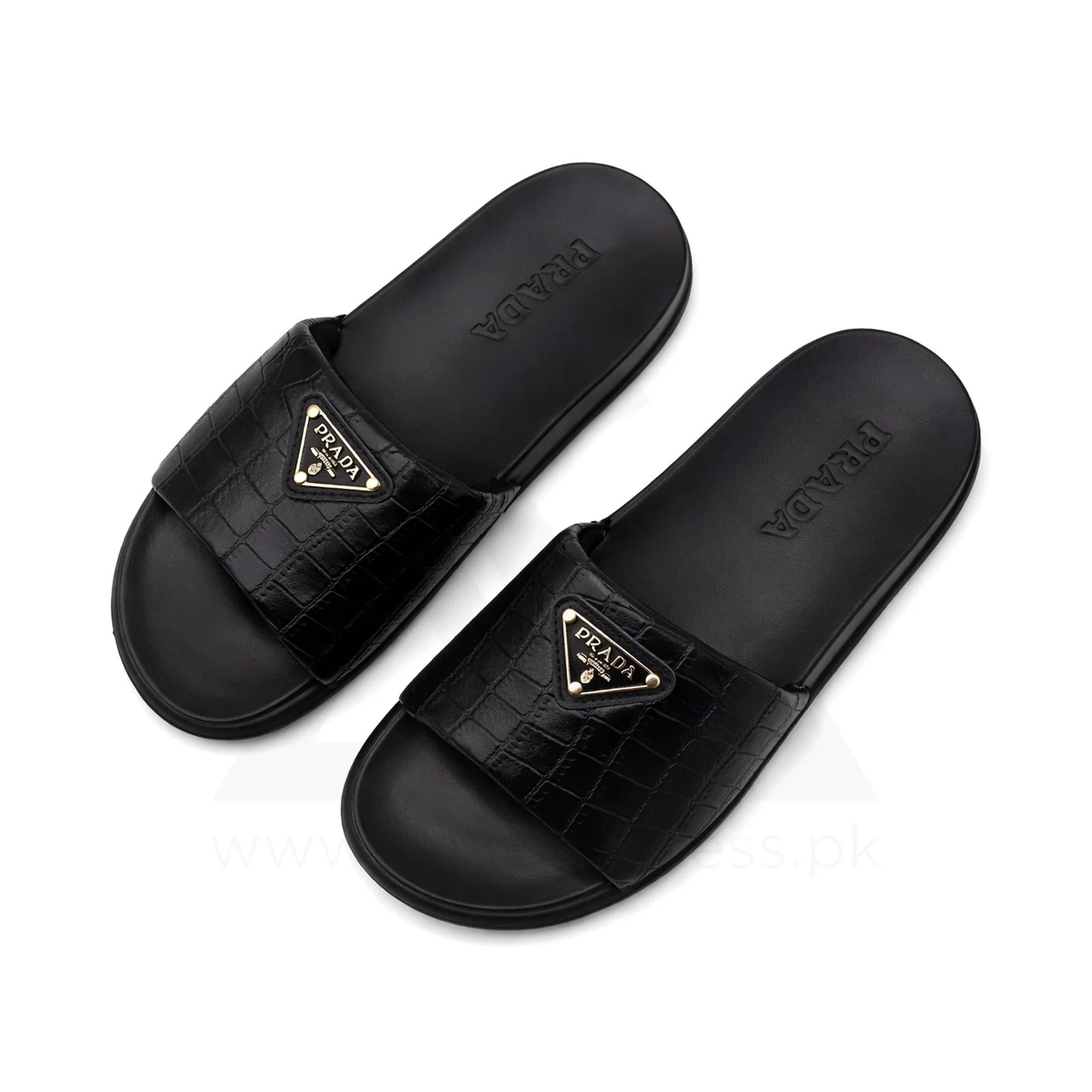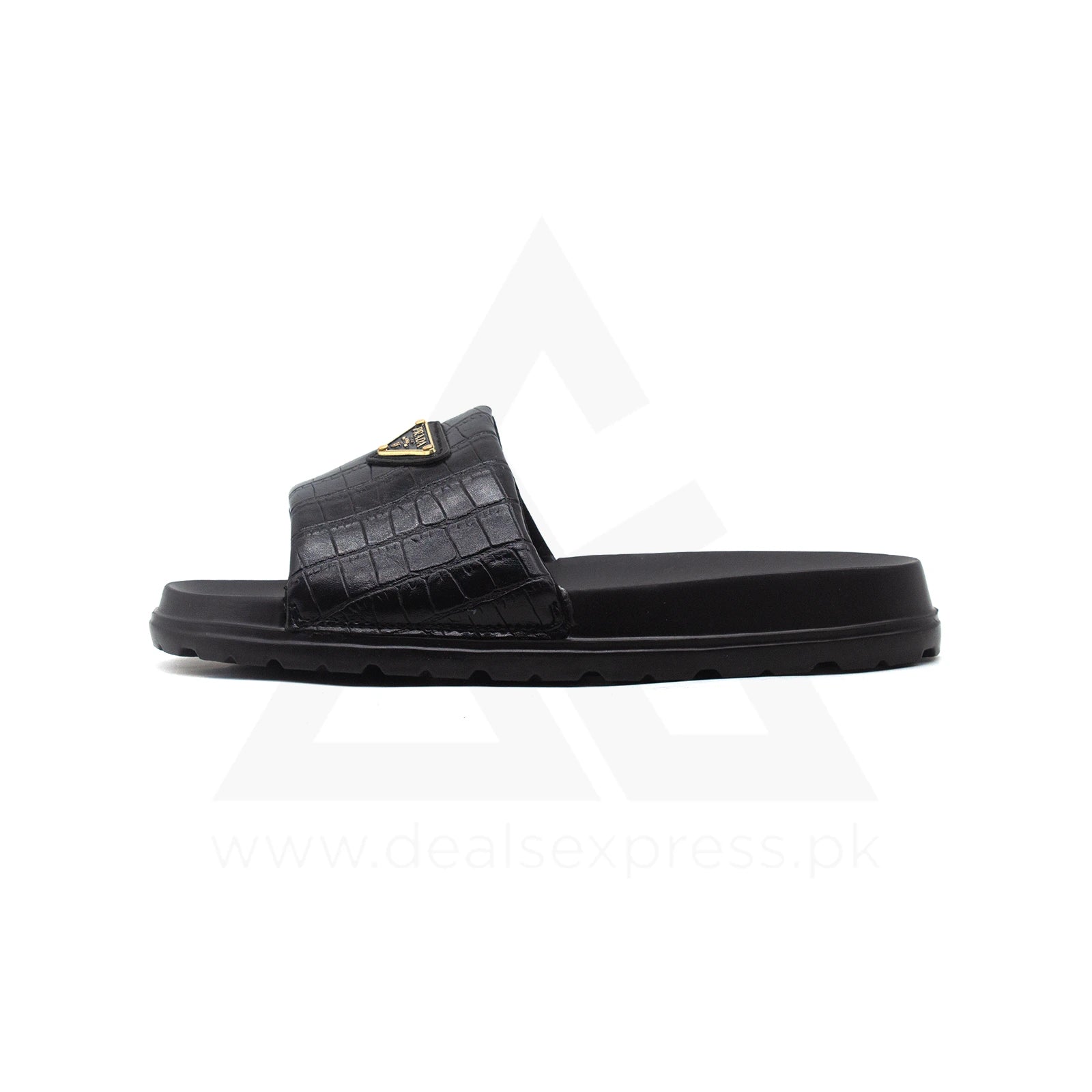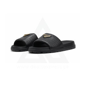 Pra Da Crocodile-Embossed Premium Slide - Triple Black