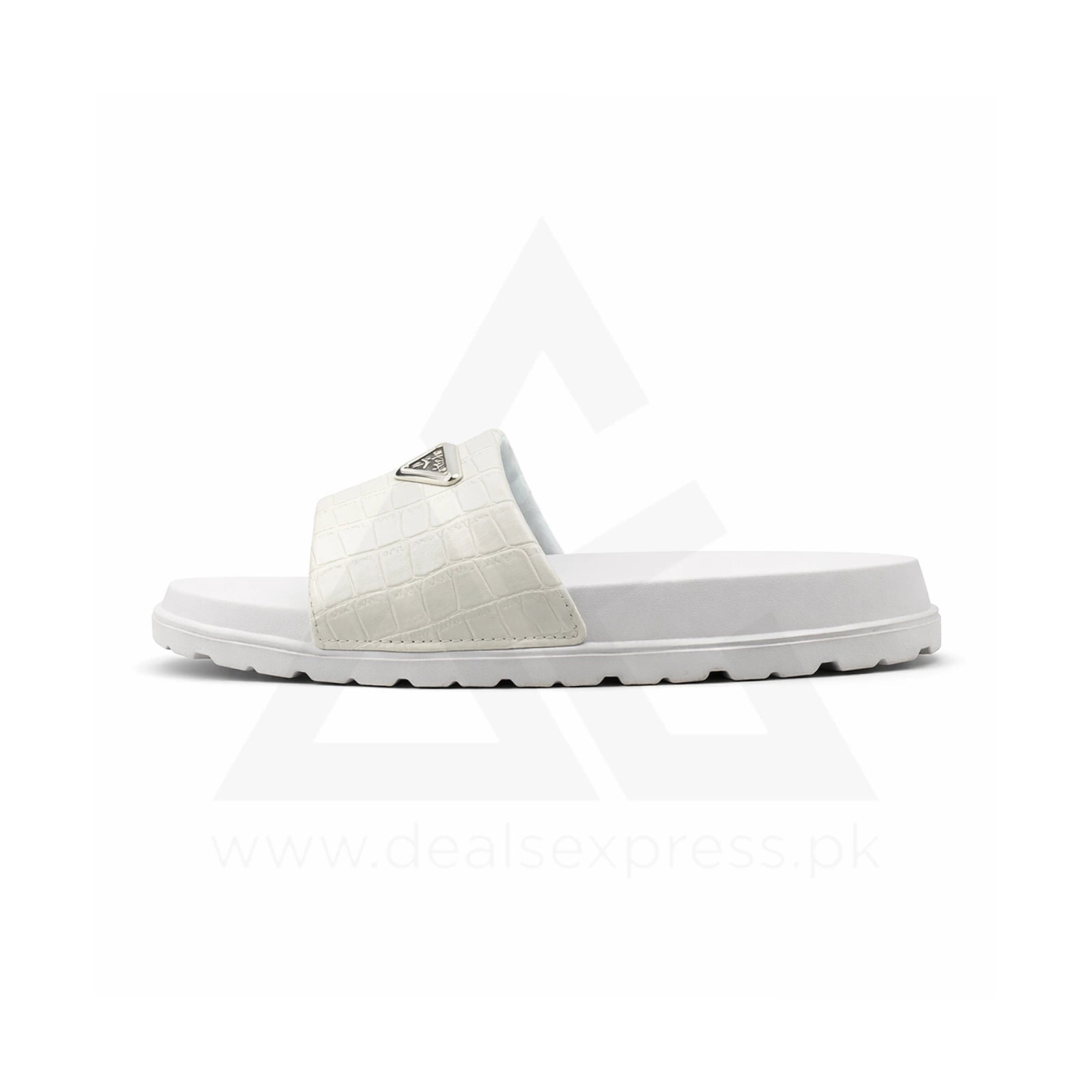 Pra Da Crocodile-Embossed Premium Slide - Triple White